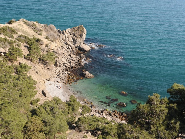 Попасть сюда можно через территорию природного заказника Новый Свет. Одна из самых удобных для отдыха и купания бухт — Черепашья. Она окружена великолепной