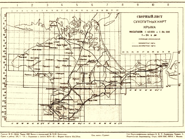 Сборный лист сухопутных карт Крыма 1890 года.